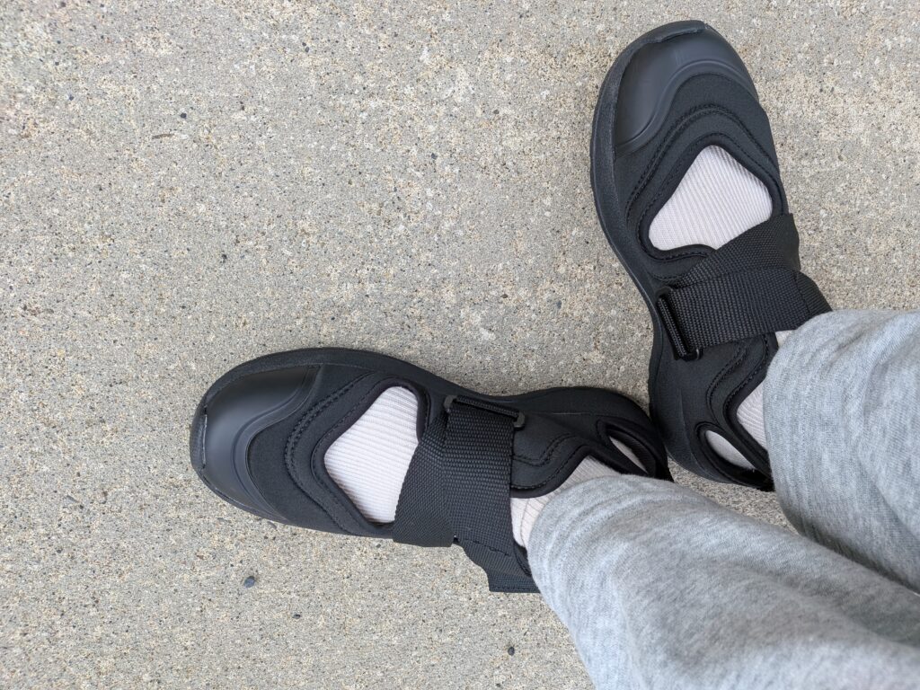 試し履きしてみると、サンダルだけどスニーカーのようなフィット感